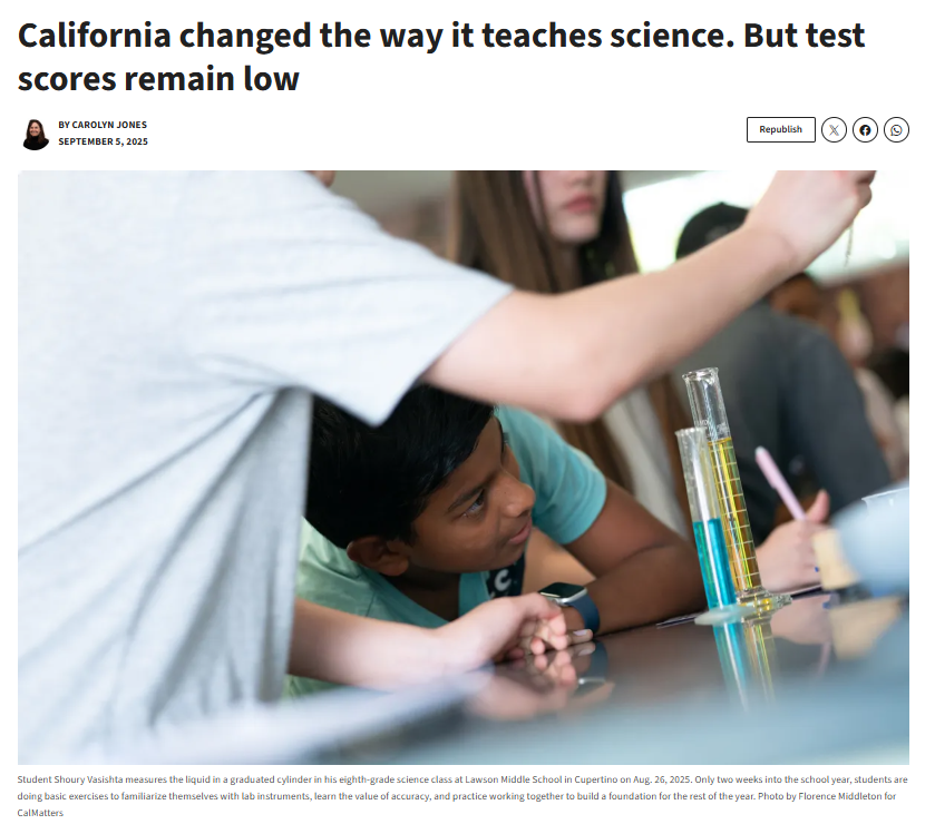 In 2019, three years after most schools began teaching the new science curriculum, only 30% of students met the standard on the state exam. Last year, the number had inched up to only 30.7%.