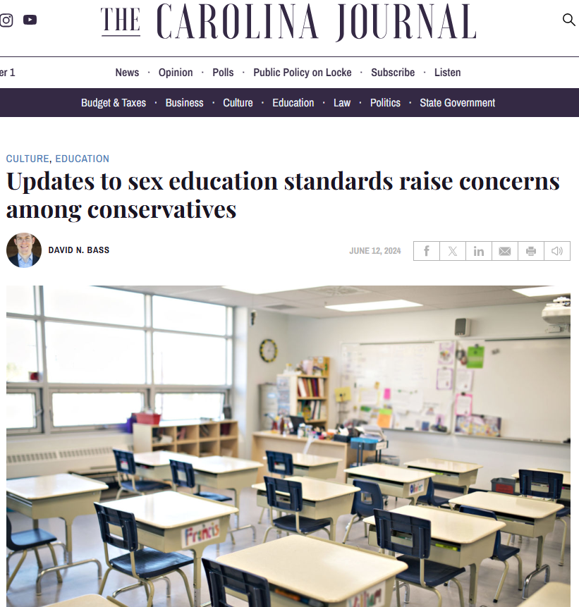 The North Carolina Board of Education recently voted to approve updates to the Healthful Living Standards for K-12 public schools, but some conservatives are wary of adjustments to the sex education components of the standards. (Source: Carolina Journal -- Read more ...)